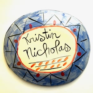 My first foray into gold lustre glazing. This platter is fired once for the design. Then it is fired to coat with the glossy glaze. Thirdly it is fired to adhere the gold lustre to the glassy surface.